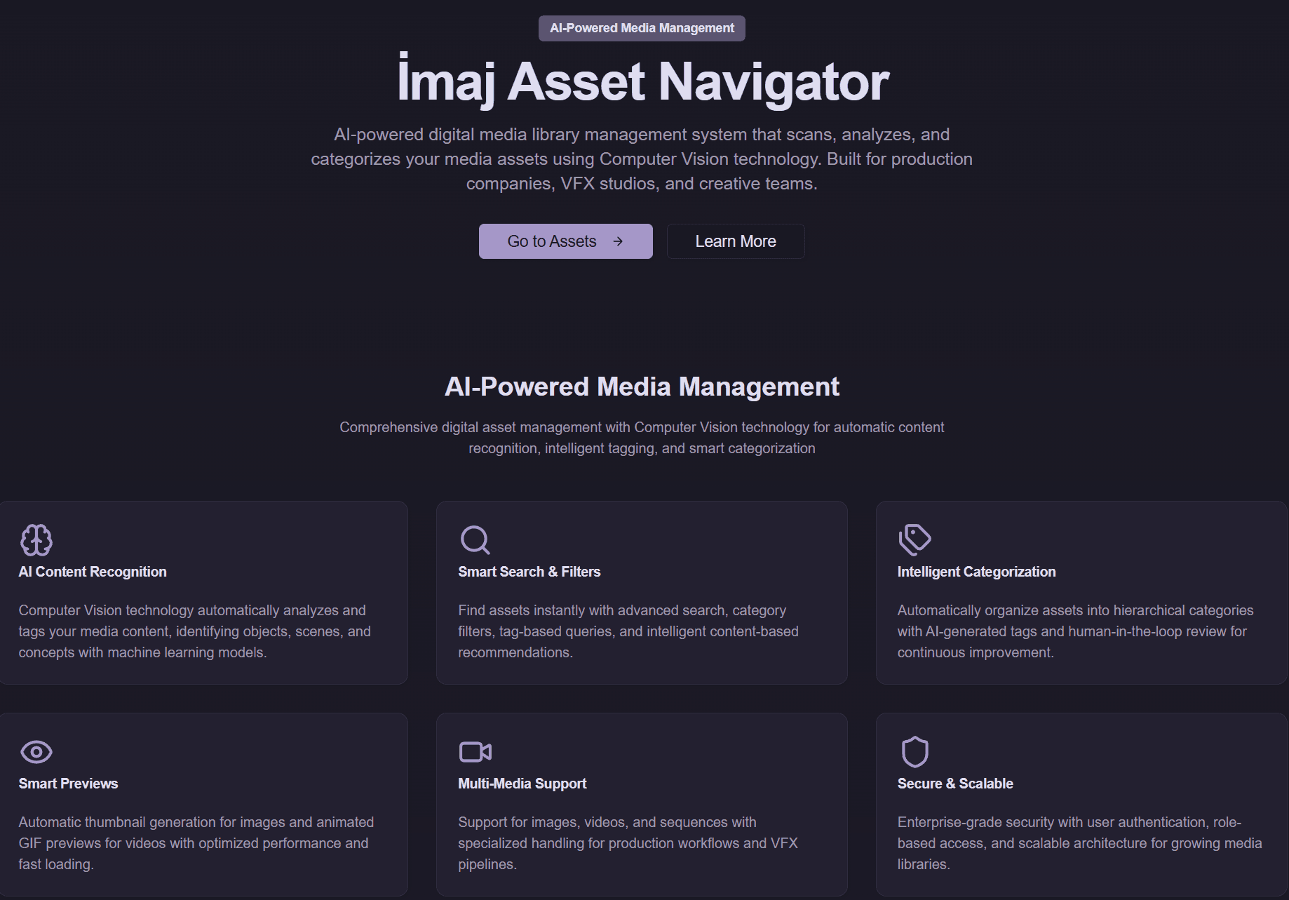 AI-Powered Enterprise Media Search and Management Platform. Our first commercial product spun off from our in-house VFX central asset management system used in production